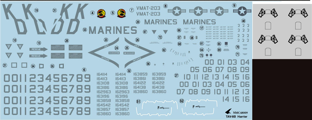 TAV-8B は AV-8B への新人及び機種転換組のための複座練習型で、ノースカロライナ州MCASチェリーポイントの VMAT-203 "Hawks" が一括して保有しています